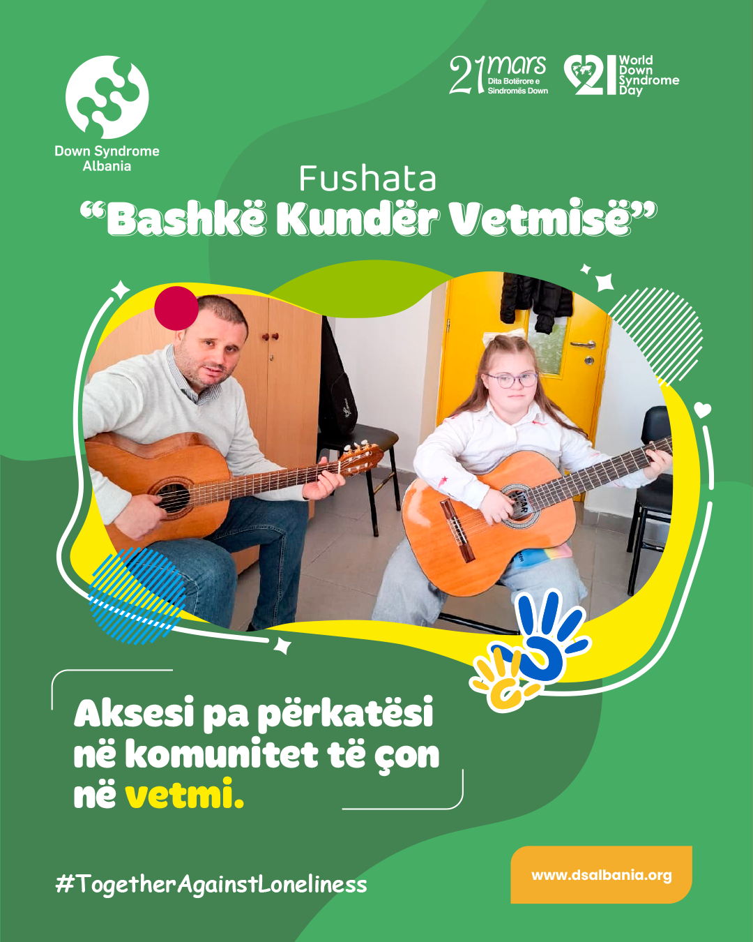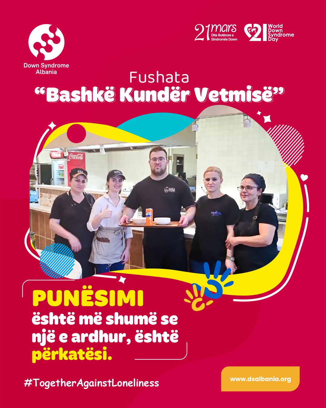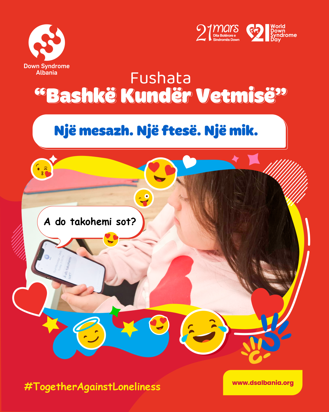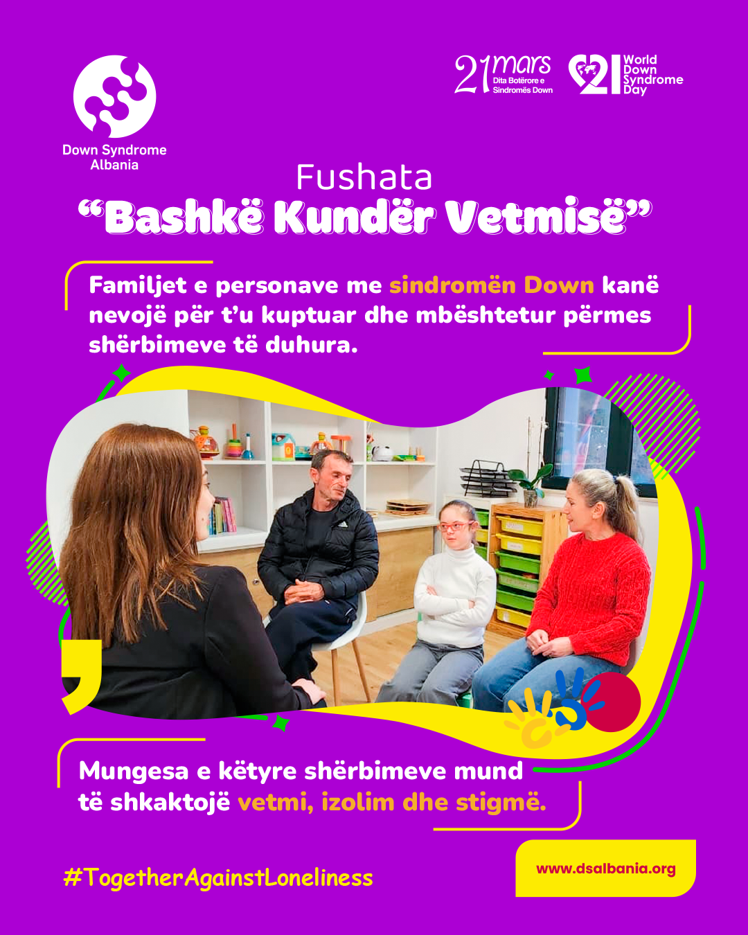 Këtë vit, tema ndërgjegjësuese e diktuar nga Down Syndrome International ku Fondacioni ynë është i antarësuar, është "Bashkë Kundër Vetmisë" #TogetherAgainstLoneliness.